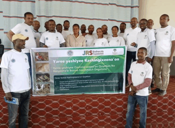 The awareness campaign also reached 300+ local community members in Kafa Biosphere Reserve (KBR) and Bale Mountains National Park (BMNP) using banners, brochures and t-shirts prepared in four languages.