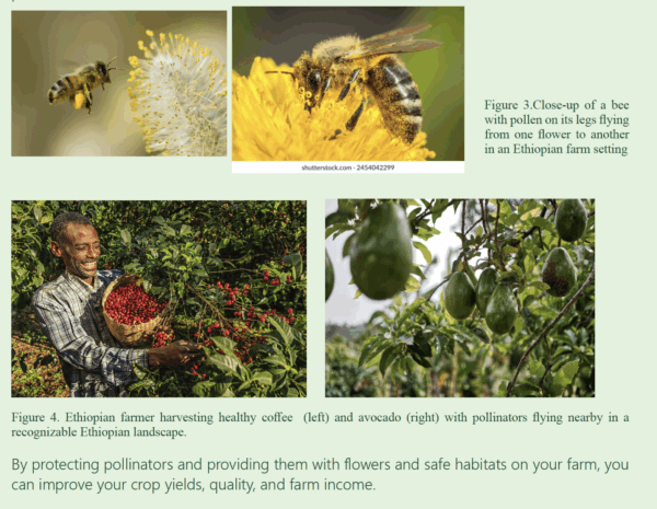Image from the Protect our Pollinators flyer, published and distributed in four languages; English, Kaffinnoo, Afan Oromo and Amharic (photos/ Hawassa University)